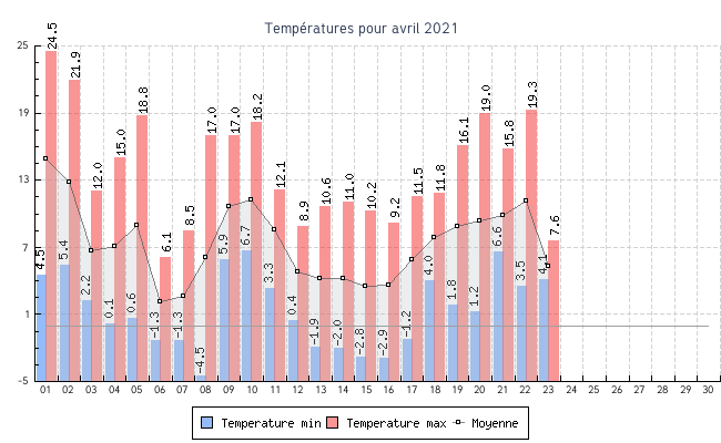 | Total | -4.5 °C | 24.5 °C | 7.4 °C | 2.8 km/h (24.8 km/h) | N |